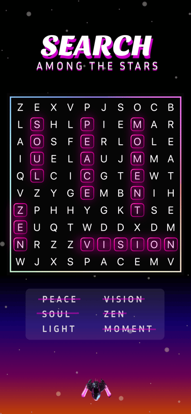 Starlight is a cosmic word search game designed to take you on a journey through a universe of words. Whether you're a casual player or a seasoned word-hunting astronaut, Starlight offers endless puzzles, six handcrafted modes and a sleek, space-inspired design that’s as visually soothing as it is intellectually satisfying. Perfect for those who love a good mental challenge wrapped in an out-of-this-world interface.